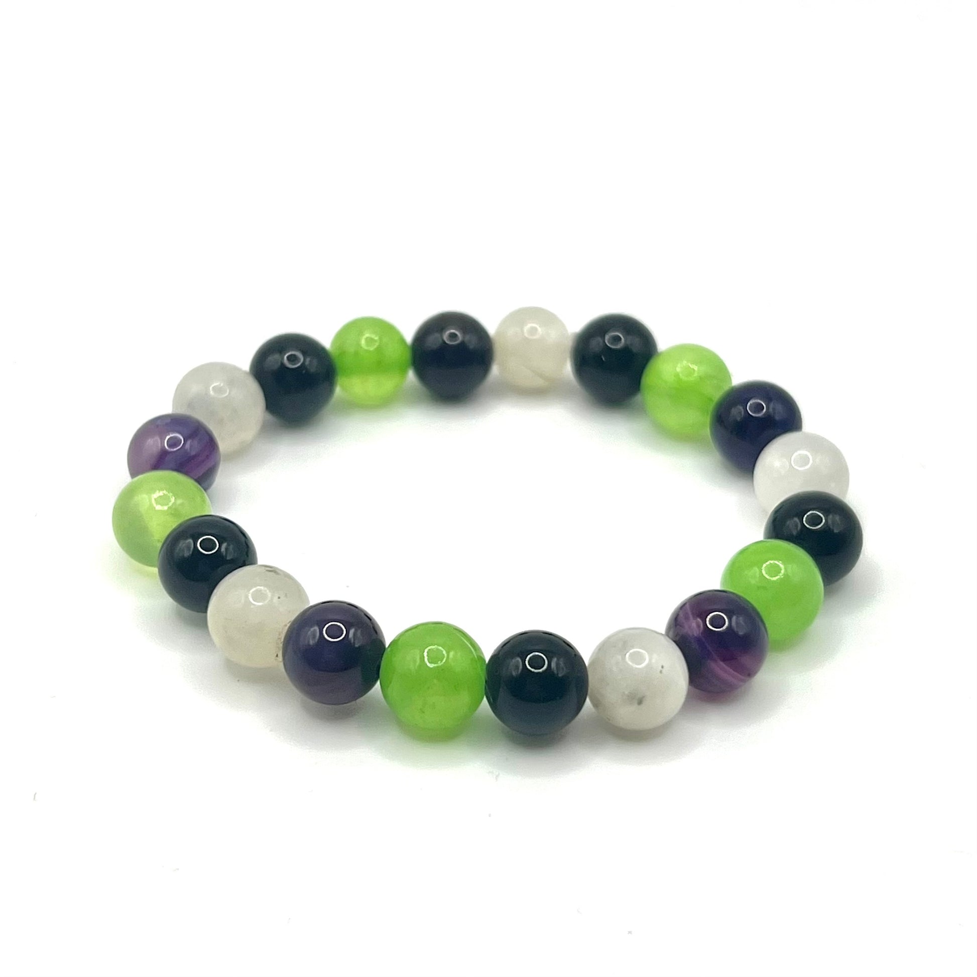 Green Apple Jade, Purple Line Agate, Obsidian & Blue Moonstone